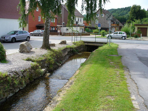 Der Weg durch die Ortschaft ist nicht sehr lang. Vom Naturfreundehaus in Richtung "Am Uferbach", unterquert die Thüringer Str. und verläuft "